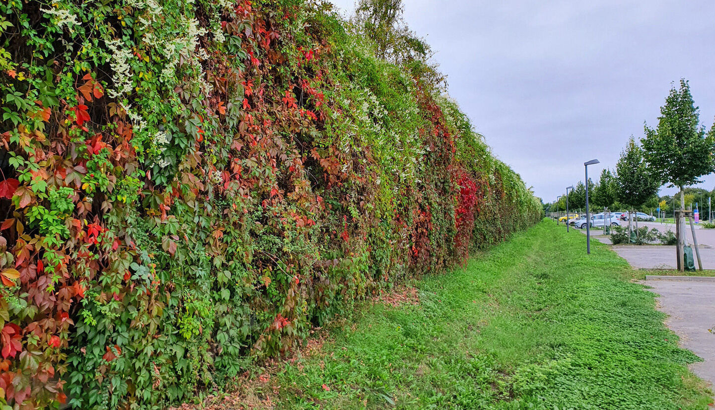 Das Ergebnis ist eine voll begrünte Schallschutzwand mit herausragenden Schalldämmwerten – perfekt für den Einsatz an Straßen, Schienen und in urbanen Bereichen